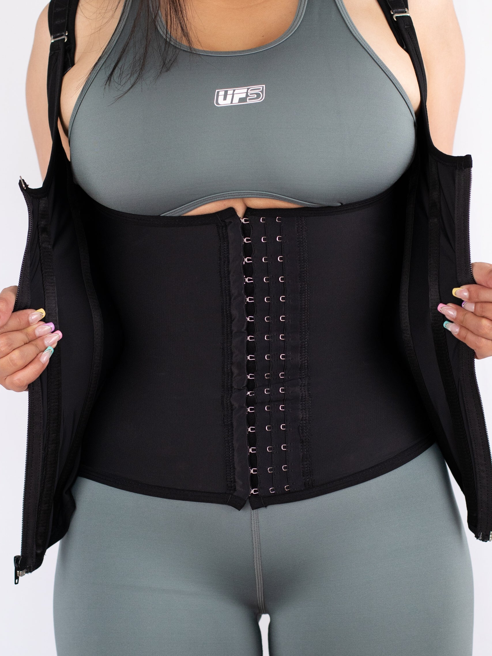 ➔ Cremallera doble ajuste y 3 líneas de broches internos para un ajuste personalizado.